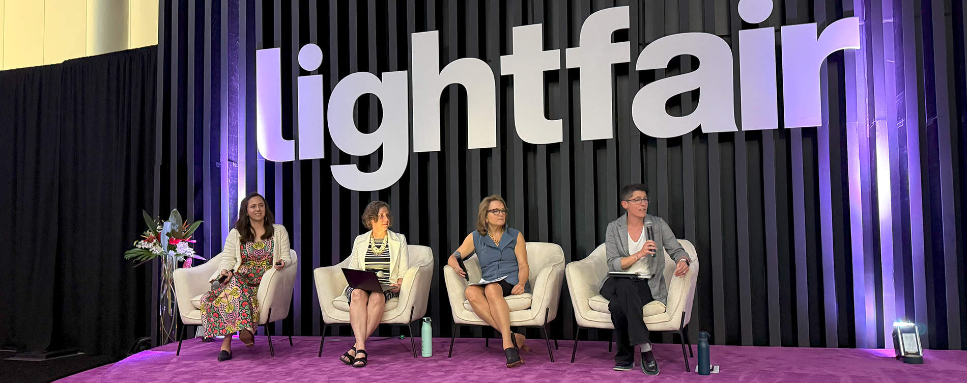 Above (L to R): Andrea Wilkerson (PNNL), Carla Bukalski (RBLD Studio), Anne Kustner Haser (AKLD Lighting Design) and Rachel Fitzgerald (Stantec) during their session, "Maintaining Lighting Designs Beyond the Punch List."