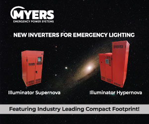 Whether you need to maintain illumination of emergency and exit lighting on a single floor or throughout an entire campus, Myers Emergency Power Systems has an Emergency Lighting Power Solution to meet your needs. Our high-efficiency systems include uninterruptible power supplies and fast transfer systems designed to support all lamp sources, including HID, electronic low voltage, fluorescent, LED, quartz, incandescent, and mixed loads. These UL 924-compliant systems offer capacities ranging from 25VA/W to 50kVA/kW and all models incorporate self-testing and diagnostics in accordance with UL 924. Optional features include seismic mounting, internal maintenance bypass switches, fast recharge, enhanced metering systems and (coming soon) cloud system monitoring.