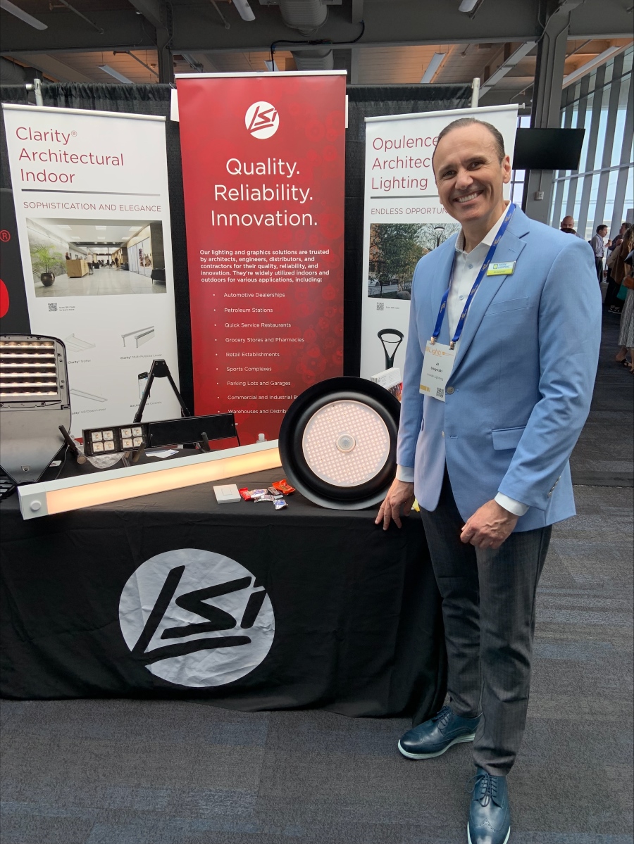 | Above: Al Uszynski of Inside Lighting swings by the LSI Industries booth |