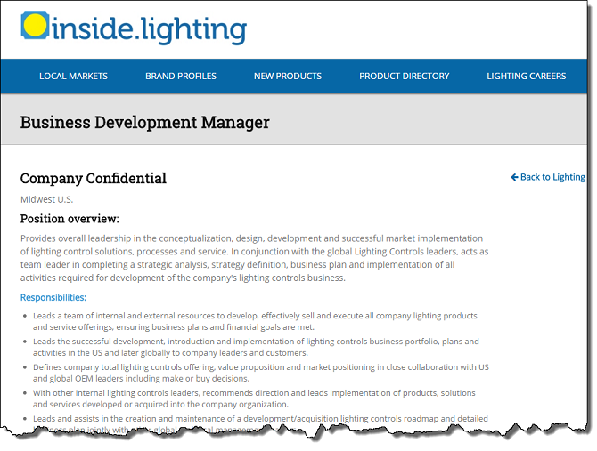 1. Your open position will appear on the list of lighting career opportunities.