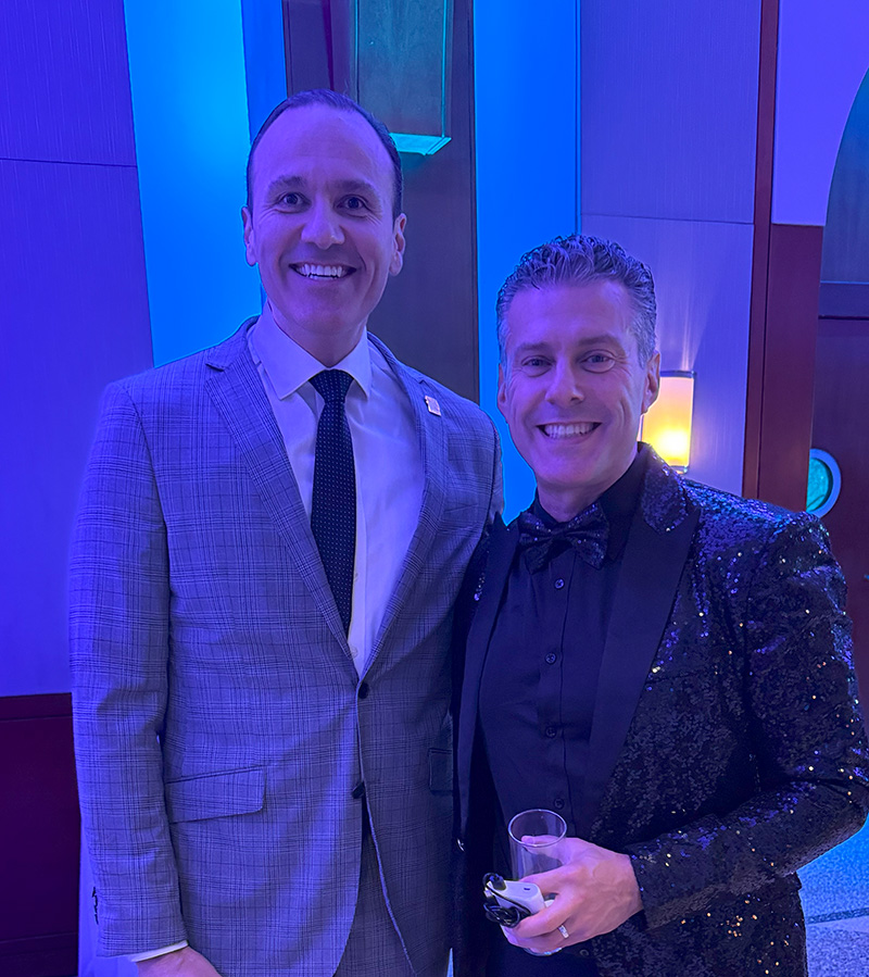 Above: Al Uszynski, Inside Lighting, with Lumen Gala co-host Asher Schoenberg, runner-up in the evening’s two-person dance-off