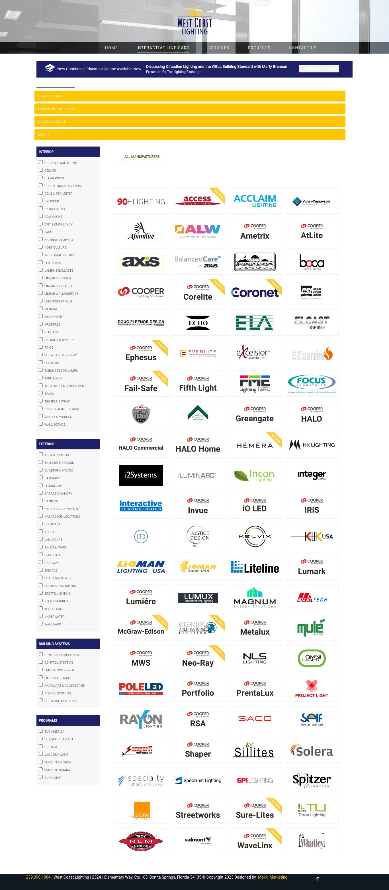 The latest accessible line card we have from West Coast Lighting, dates back to June 2023, lists several well known lighting brands including CSL LightingALW, NLS Lighting, Axis Lighting, Coronet and Omnilight, among others. In July 2023, the agency's website displayed an error message, and the domain wcltg.com has since been redirected to the website of Tampa Bay Lighting, Cooper's agent just north of West Coast Lighting's territory.